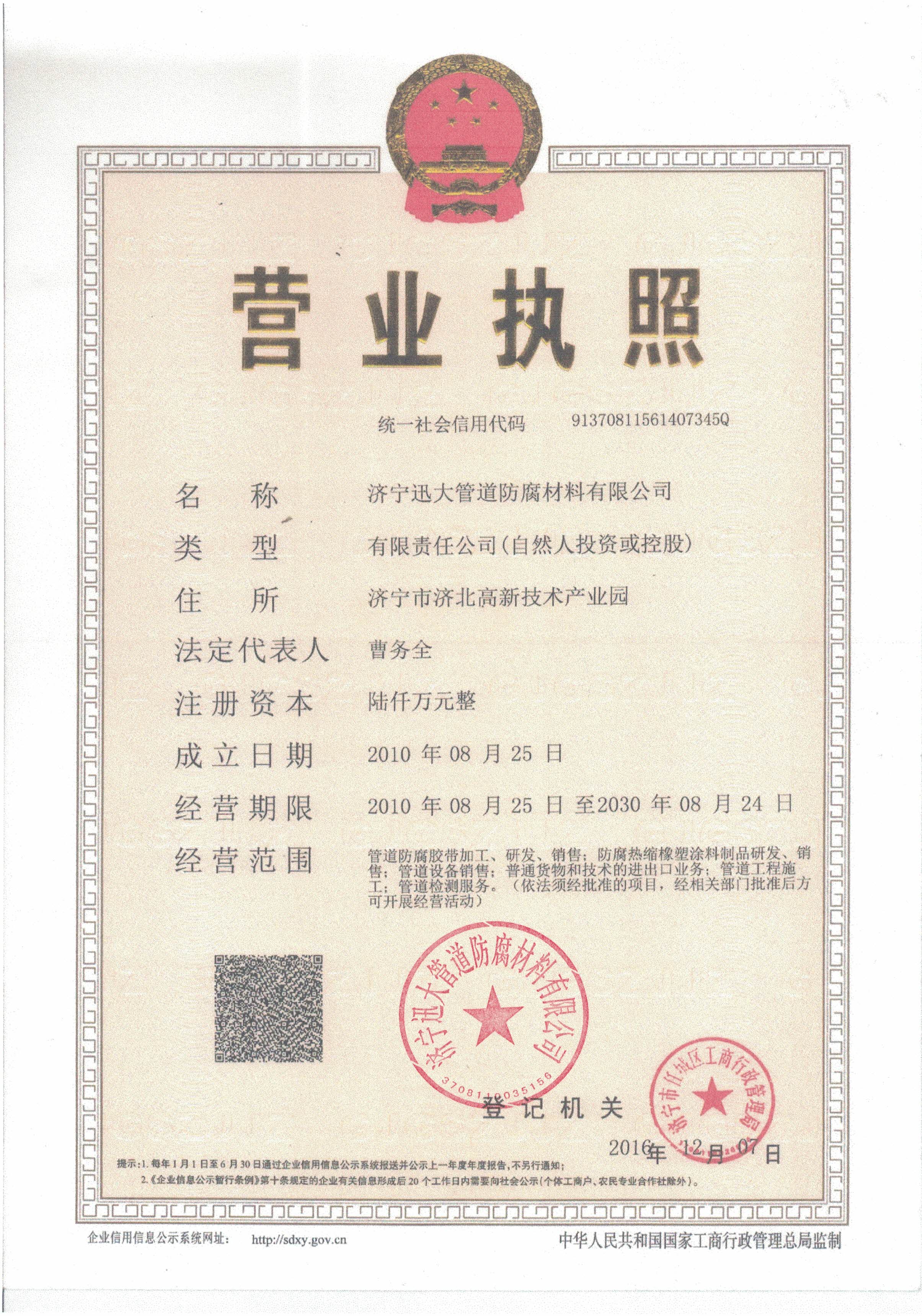 濟寧迅大管道防腐材料有限公司